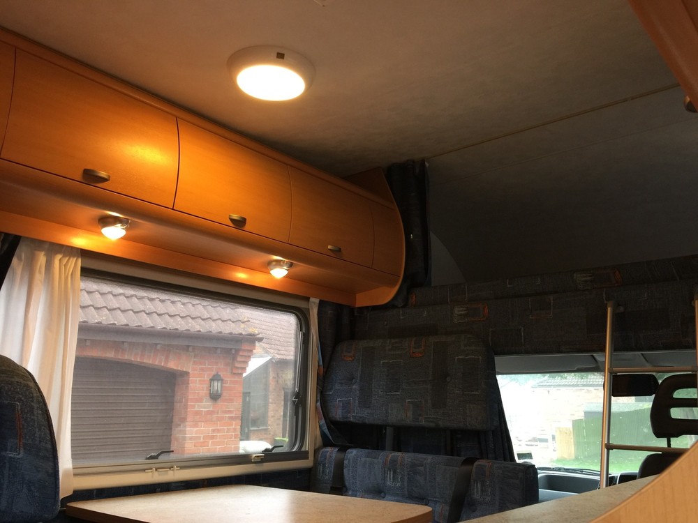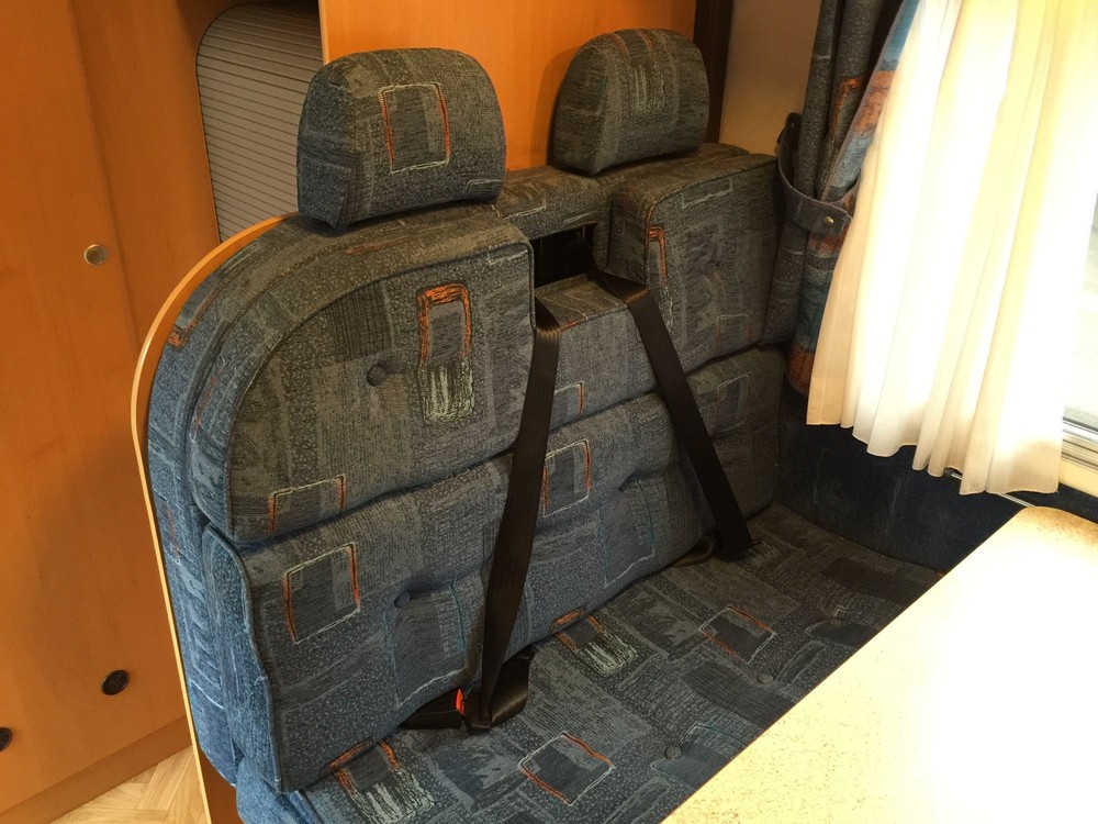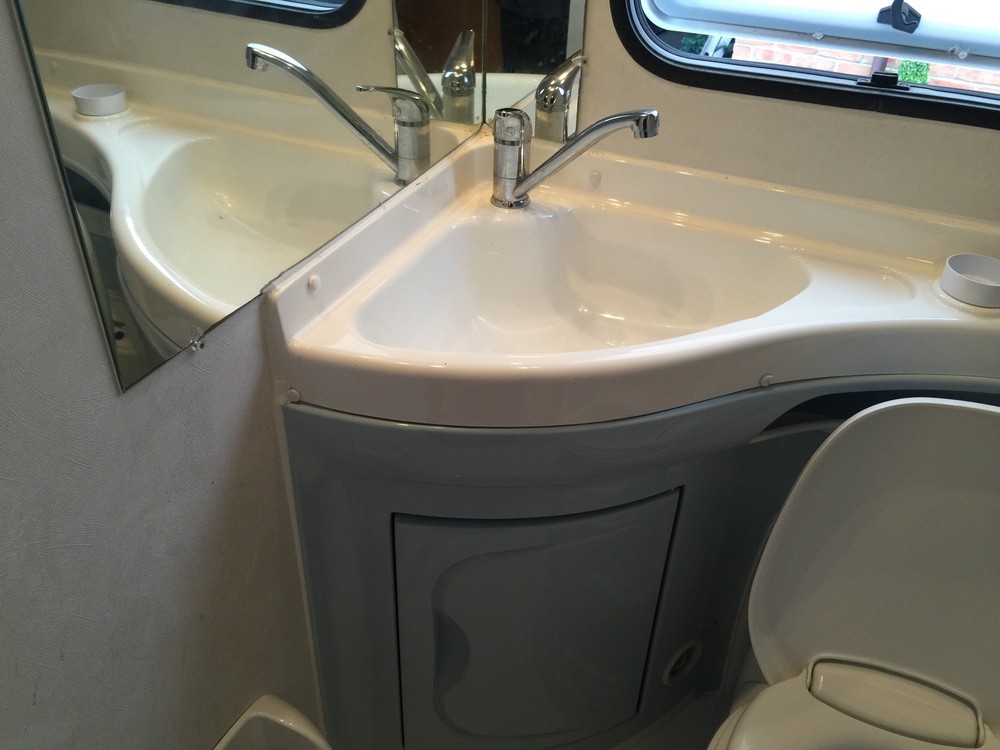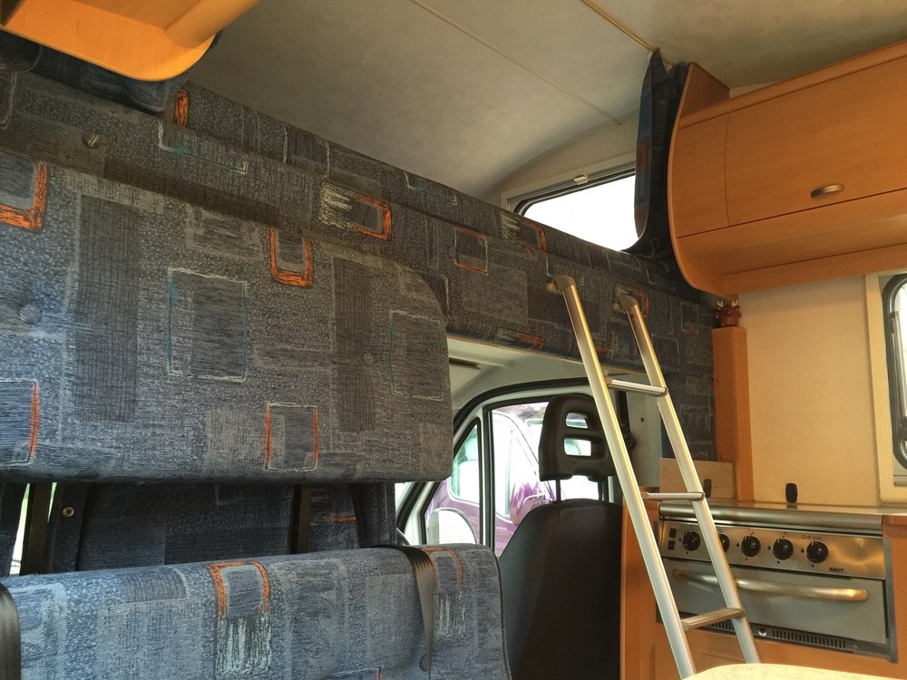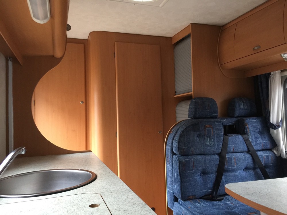 4 Berth, sleeps 2 above cab on a really huge double and 2 down below on the double sofas that turn into a respectable sized double bed. Trumatic gas heating, Truma hot water boiler, Dometic Power Fridge/freezer 12v/240v/gas, 4 ring Smev gas hob, gas grill, Fiamma wind out awning, large wet room to rear which includes a Thetford cassette toilet + hot/cold shower + sink with hot/cold tap and storage cupboards, Sony CD player with aux input, reversing camera with colour display in cab, Twin sofas both have 2 seat belts fitted (so you can carry 6 people in total!), 12v lighting, blinds/fly screens to windows, Fiamma power roof vent, Status TV aerial, fresh water tank, waste water tank, kitchen sink with hot/cold mixer tap. Incredible amount of storage space in cupboards etc.
