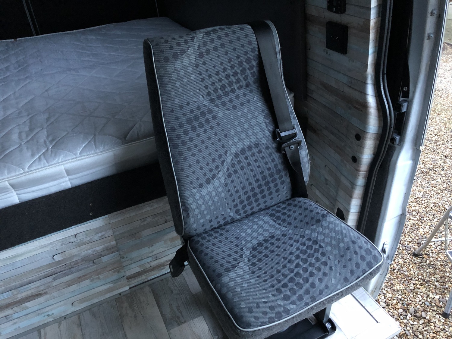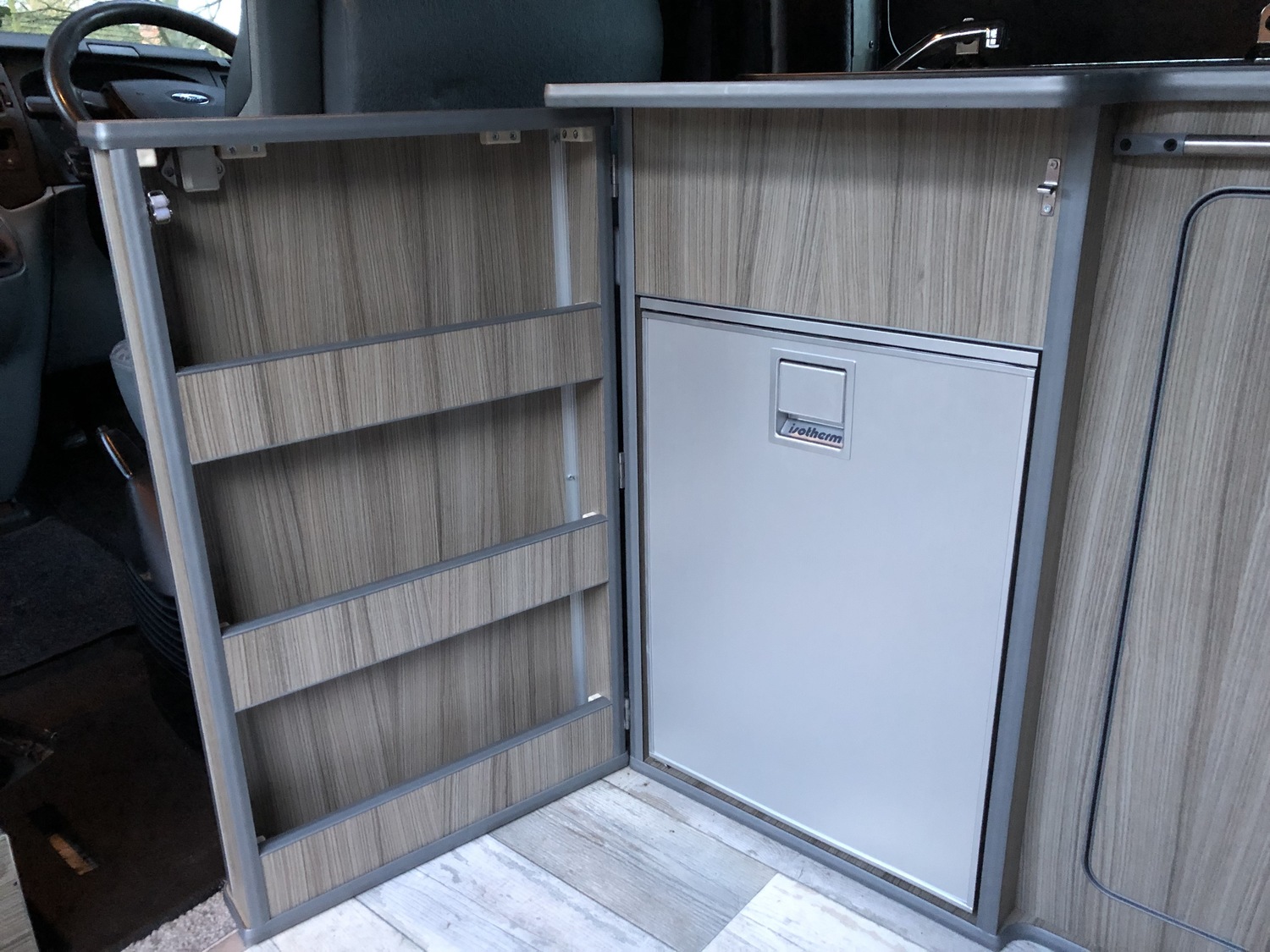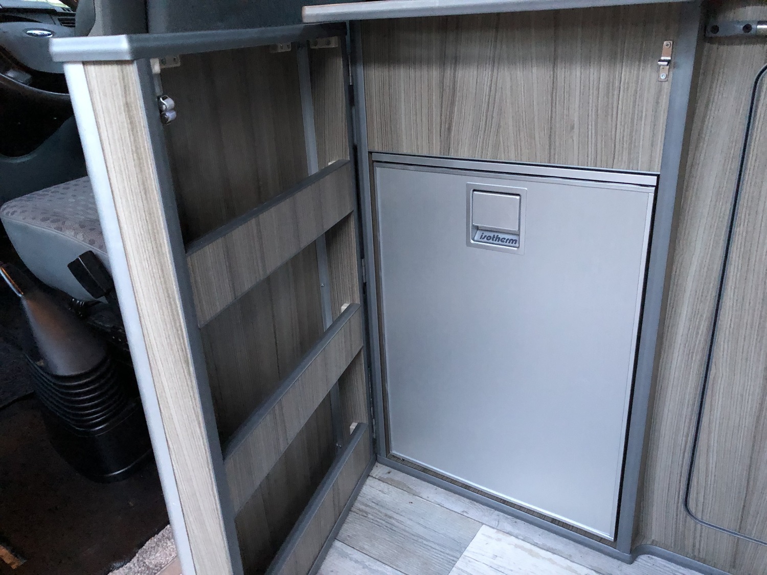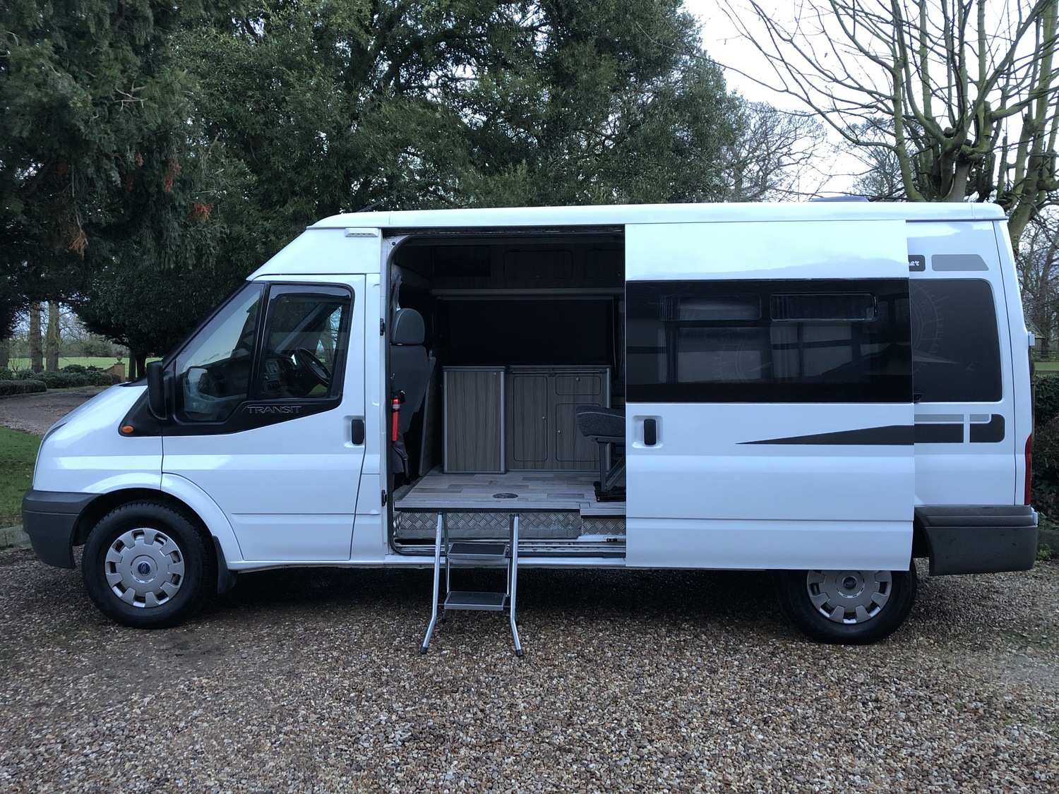 Excellent specification conversion to include: Rear fixed bed with massive storage underneath, Eberspacher Diesel heating system, sink with cold water tap, 240v hook up, 12v lighting, 240v lighting, leisure battery, 240v socket, 12v socket, rear swivel seat with 3 point seatbelt, rotating front passenger seat, 2 x removable tables (large and small), Portaloo, 12v to 240v invertor, Digital TV, Isotherm fridge/freezer, loads of storage, CD player, remote central locking, alarm, electric windows.